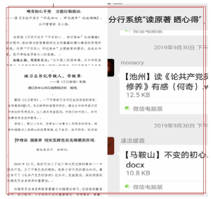 為避免理論學(xué)習(xí)“學(xué)過就忘、不求甚解”,南京分行連續(xù)兩年利用網(wǎng)絡(luò)微信群在轄內(nèi)開展“讀原著 曬心得”活動(dòng),每年為干部職工指定閱讀書目,干部職工通過網(wǎng)絡(luò)微信群分享自己讀原著的心得體會(huì),已累計(jì)分享心得體會(huì)1120篇。從閱讀書目來看,主要為《共產(chǎn)黨宣言》《習(xí)近平談治國理政》(第一卷、第二卷)《之江新語》《擺脫貧困》《習(xí)近平關(guān)于“不忘初心、牢記使命”重要論述摘編》《論共產(chǎn)黨員的修養(yǎng)》等經(jīng)典著作。從分享形式來看,干部職工可以通過音頻、文字等多種形式分享自己的讀書心得,分享心得側(cè)重短小精悍、細(xì)水長流,做到“學(xué)習(xí)日日新、心得天天談、興趣漸漸增”,讓干部職工在日積月累中增加閱讀興趣、提升思想高度。從激勵(lì)機(jī)制來看,分行按月對讀書心得體會(huì)文章進(jìn)行整理、篩選并制作成美篇,以“南銀宣說”為平臺(tái)進(jìn)行推介分享,優(yōu)秀心得體會(huì)文章既有中支的,也有縣(市)支行的,既有宣傳條線的,也有業(yè)務(wù)部門的,通過示范作用,帶動(dòng)廣大干部職工愛學(xué)習(xí)、想學(xué)習(xí),營造理論學(xué)習(xí)的濃厚氛圍。