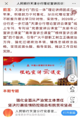 2020年,天津分行結合新媒體移動化、可視化、智能化特點,進一步探索理論宣講新途徑,積極打造“天津分行理論宣講云課堂”在線宣講平臺,將課堂移到指端,讓理論宣講由一時一地轉化為隨時隨地。“云課堂”著力提升理論宣講常態化、專業化、項目化水平,在確保每日推送的前提下,形成了一批精品理論宣講課,發現了一批央行宣講人,在深化理論闡釋、凝聚思想共識、助推履職發展等方面取得較好成效。