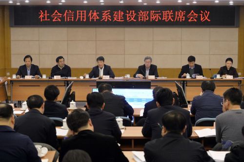 1月14日,社會信用體系建設部際聯席會議在京召開。會議認真學習貫徹黨的十八屆五中全會和中央經濟工作會議精神,總結2015年社會信用體系建設成效,研究部署2016年重點工作,聽取全國信用信息共享平臺匯報演示,研究討論各部門信用體系建設推進情況與工作設想。中國人民銀行黨委書記、行長周小川和國家發展改革委黨組書記、主任徐紹史出席會議并講話。